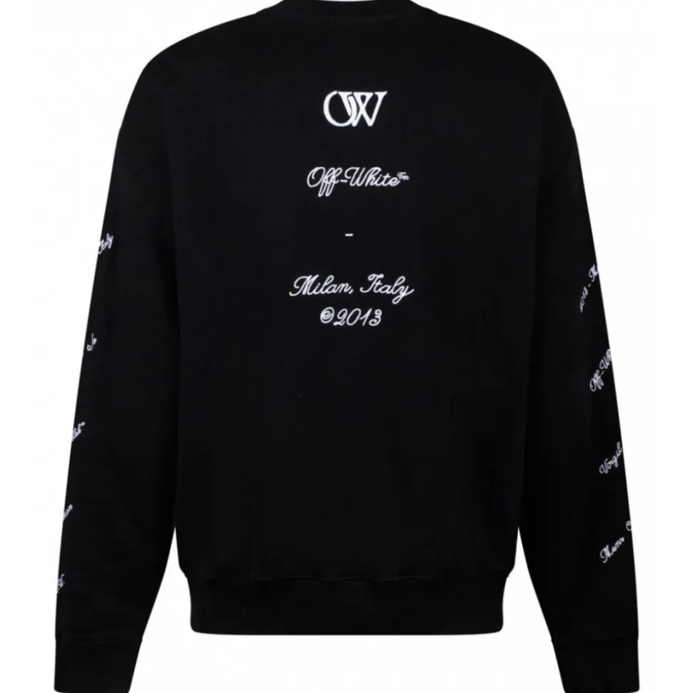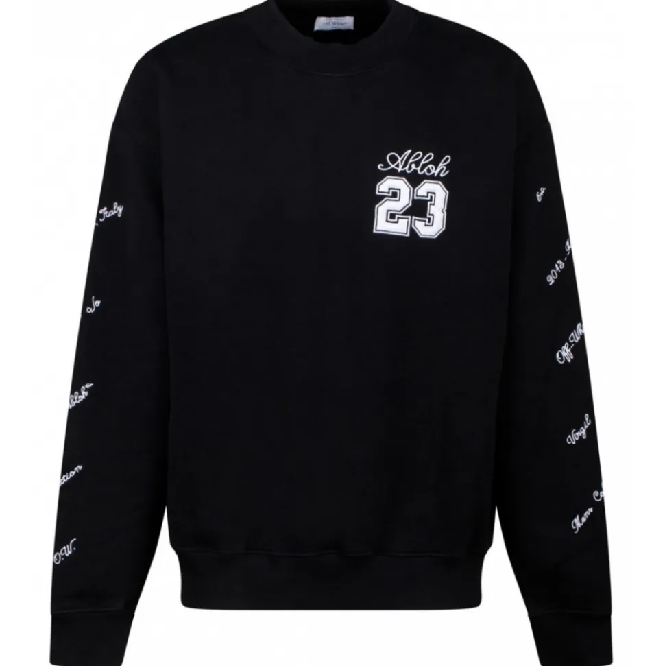 Off White 24 Logo Skate Sweatshirt. Black cotton sweatshirt, knitted construction, embroidered logo at the chest, sleeves and rear. Crew neck, drop shoulder, long sleeves, ribbed cuffs and hem, straight hem, towelling lining.