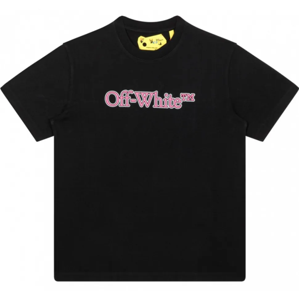 Off White Kids Black and Pink T-Shirt. Black and pink cotton t-shirt, logo print to the front, crew neck, short sleeves, straight hem.