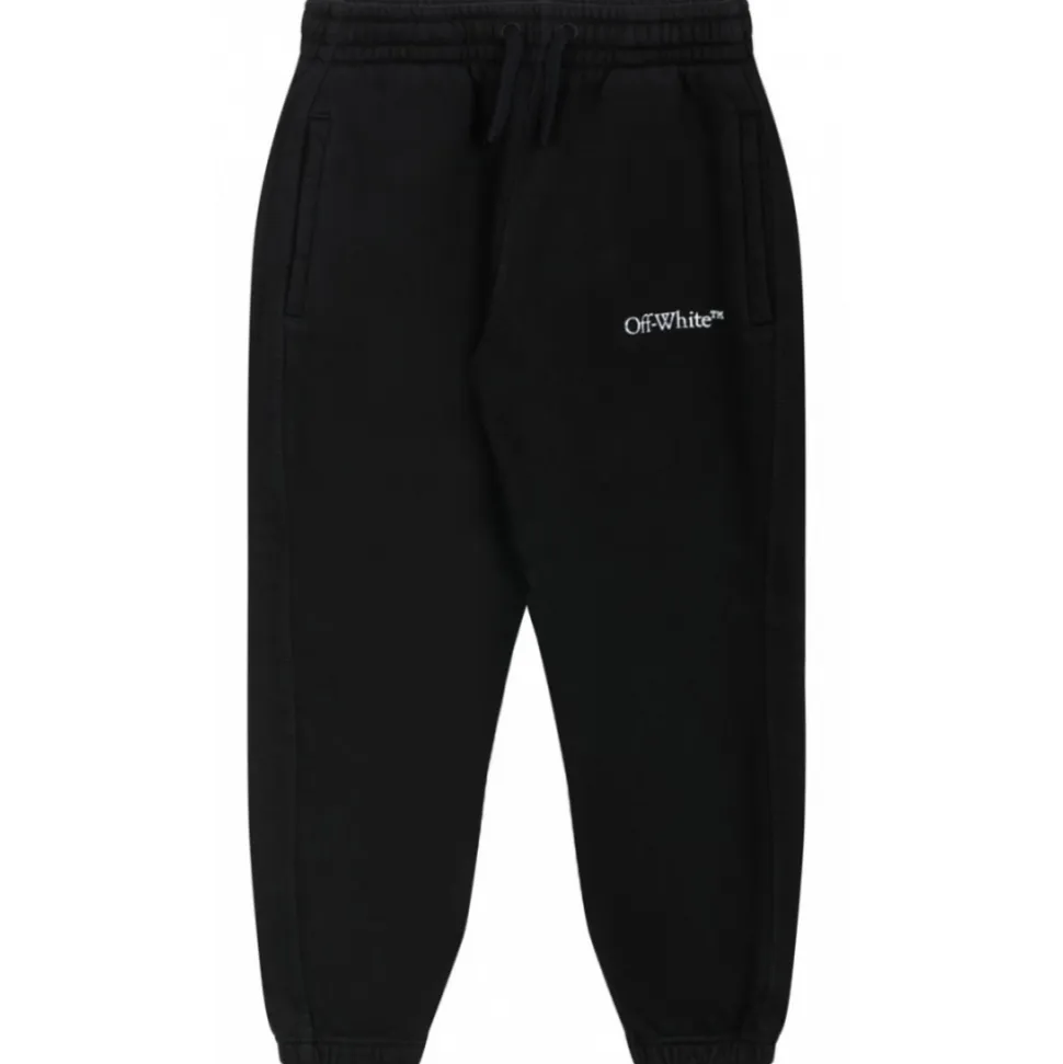 Off White Kids Black and White Cotton Track Pants. Black and white cotton track pants, elasticated drawstring waistband, logo print to the front, slip pockets to the sides, elasticated ankles, straight leg.