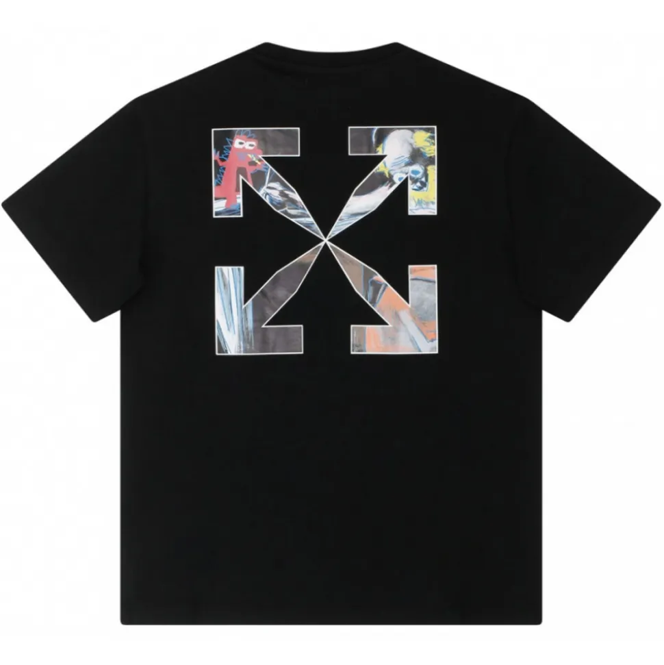 Off White Kids Black Cotton Logo Print T-Shirt. Black cotton t-shirt, monster arrows logo print to the rear, signature logo print to the front. Crew neck, short sleeves and straight hem.