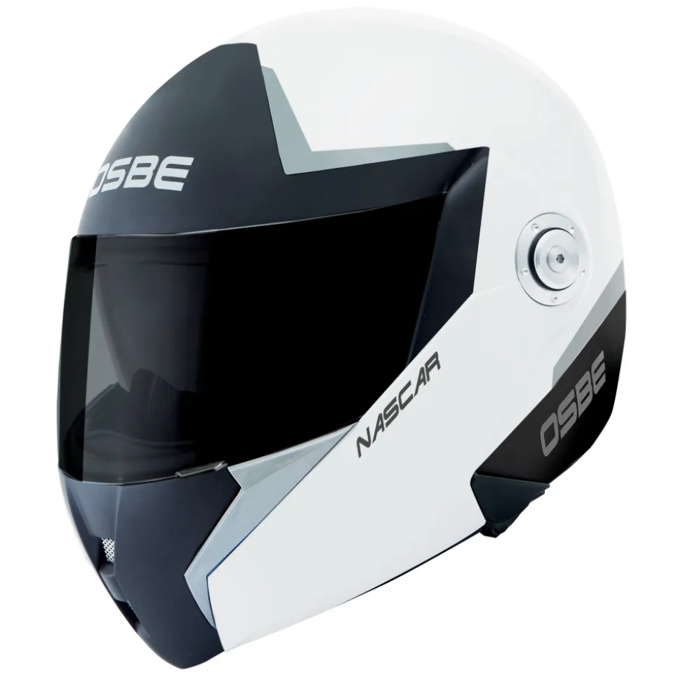 Osbe Italy – Nascar Silver Black White – Motorcycle Helmet – High Quality – Made in Italy