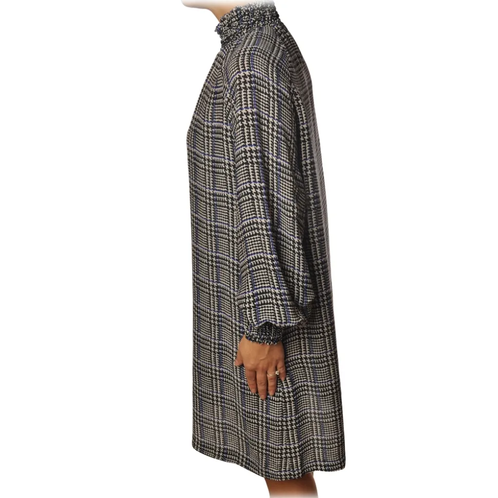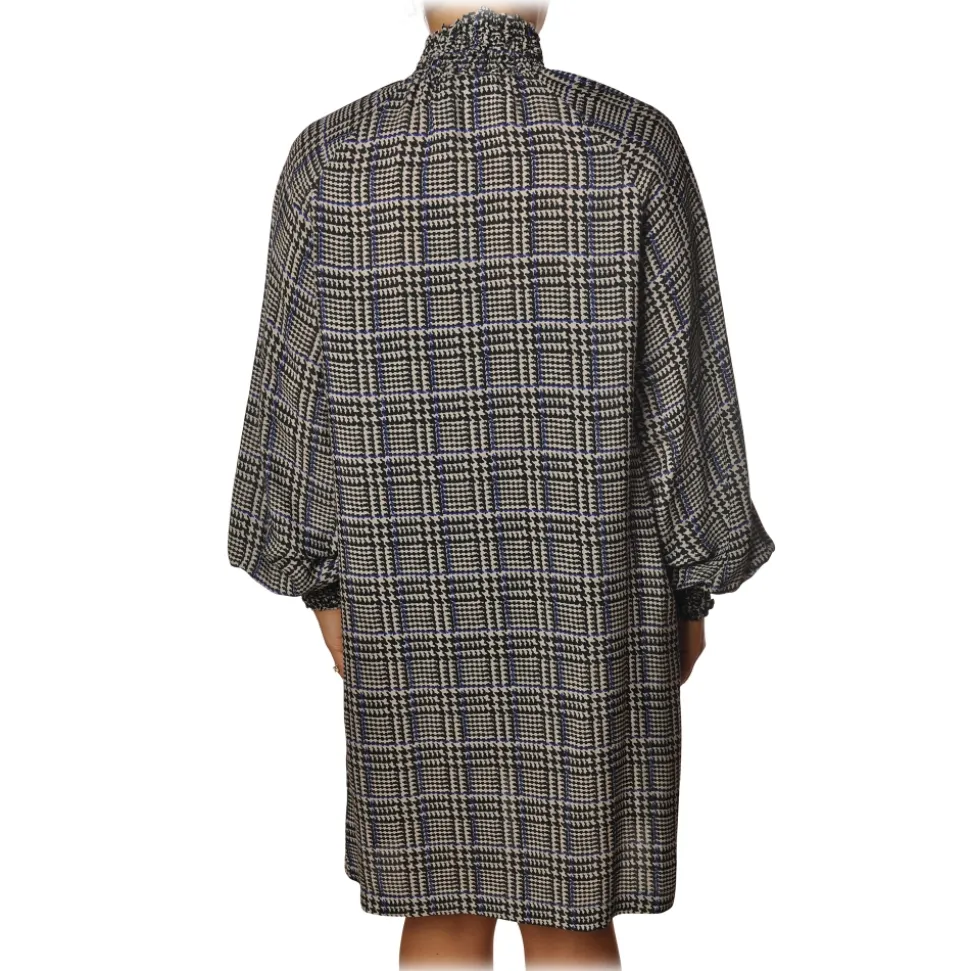 Ottod’Ame dress, wide long-sleeved model with elastic cuffs and neck, raglan sleeves, in check pattern.
