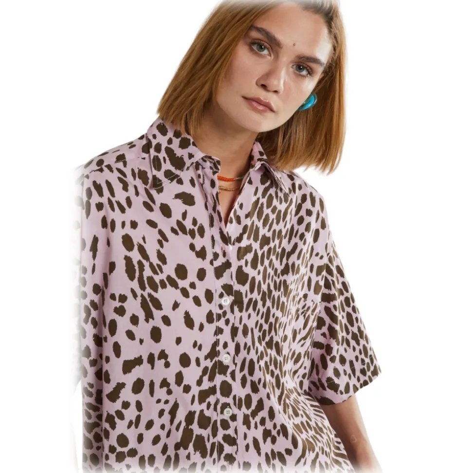 Ottod’Ame shirt, oversized, loose-fitting with short sleeves, collar and button fastening, in printed spotted pattern.