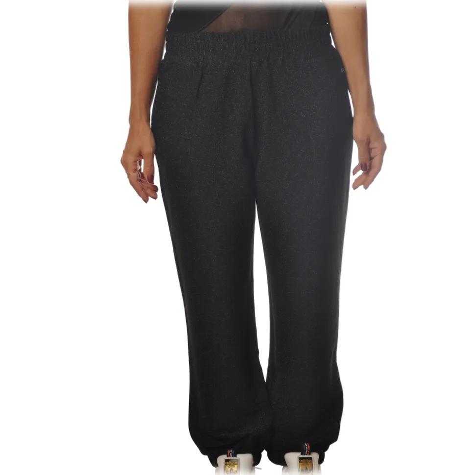 Ottod’ame trousers, sports model with elastic waistband, with two welt pockets, with cuff on the bottom, in laminated and stretch fabric.