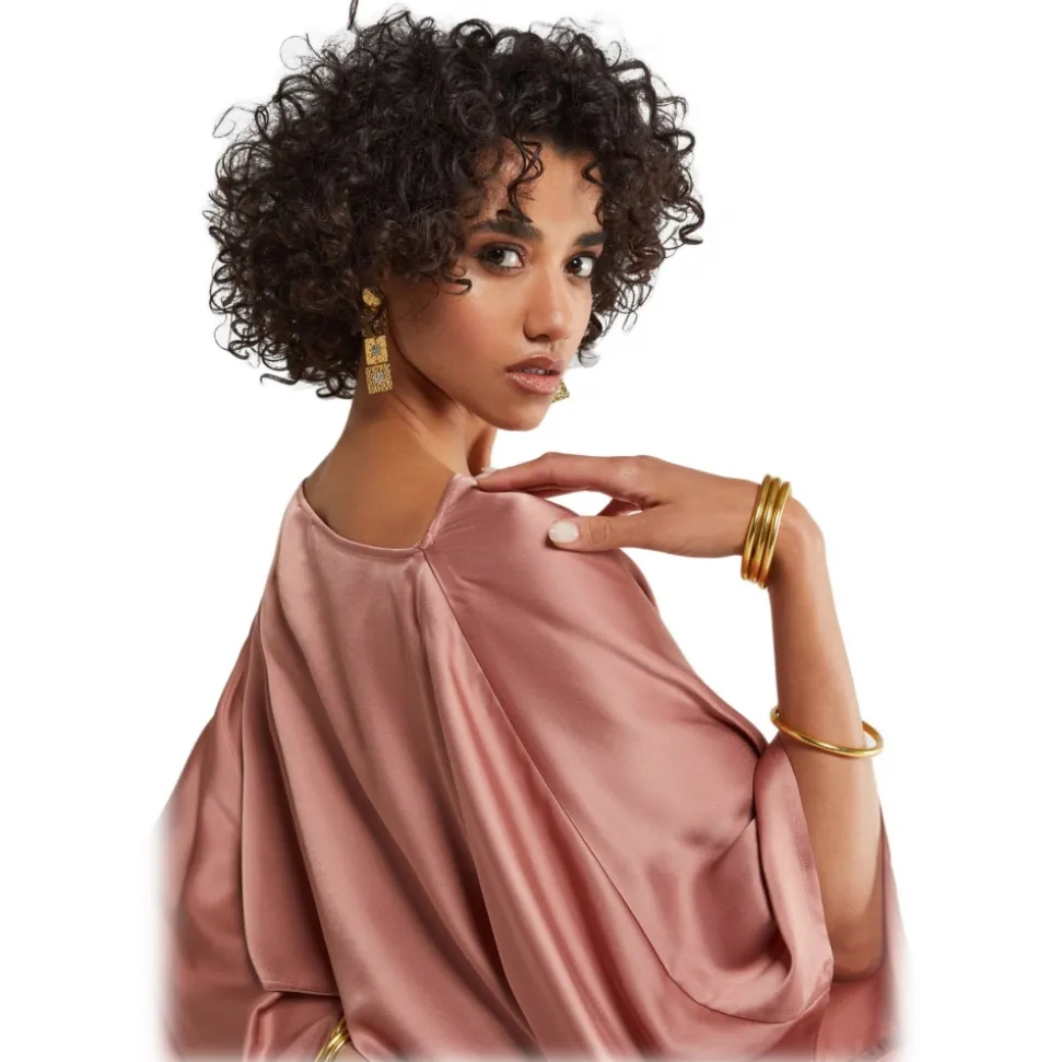 Ottod’Ame boxy, fluid, kimono-sleeved shirt in shiny pure viscose fabric.