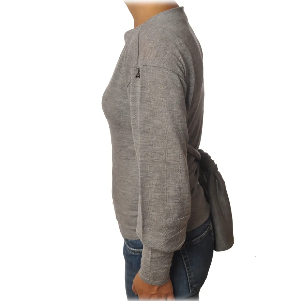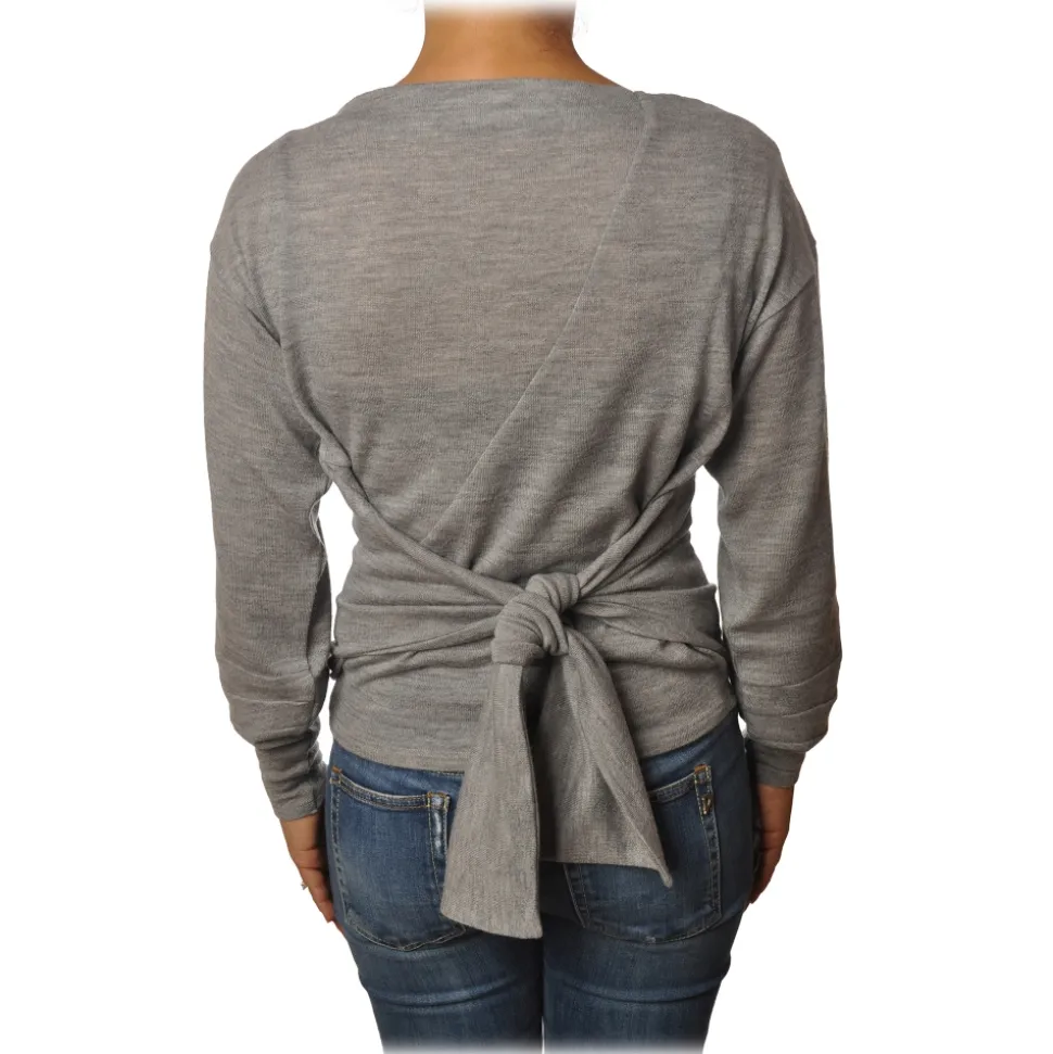 Patrizia Pepe – Boat Neck Sweater with Sash – Gray Melange – Pullover – Made in Italy – Luxury Exclusive Collection