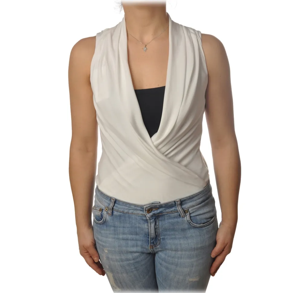Patrizia Pepe – Body Sleeveless with Crossed V-neck – White – Shirt – Made in Italy – Luxury Exclusive Collection