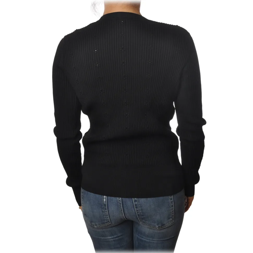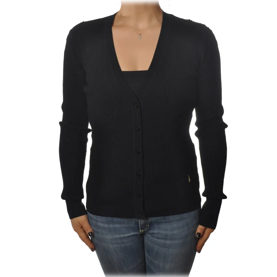 Patrizia Pepe – Cardigan Model with Buttons and V-neck – Black – Pullover – Made in Italy – Luxury Exclusive Collection