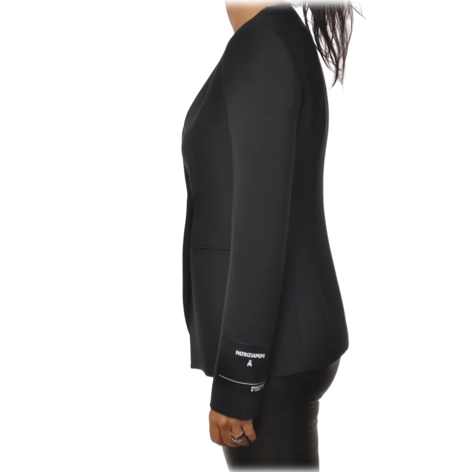 Patrizia Pepe – Double Breasted Collarless Jacket – Black – Jacket – Made in Italy – Luxury Exclusive Collection