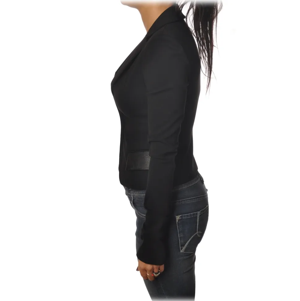 Patrizia Pepe – Jacket Two Buttons with Flaps in Faux Leather – Black – Jacket – Made in Italy – Luxury Exclusive Collection