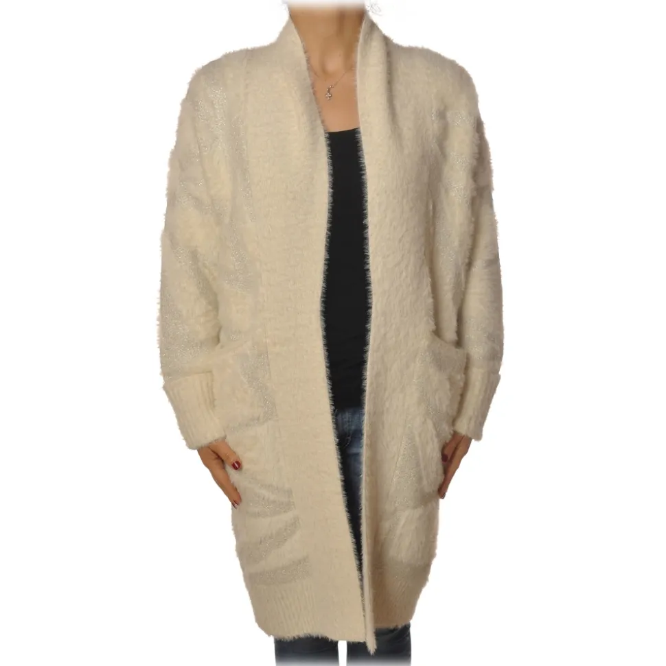 Patrizia Pepe – Long Cardigan Without Closures – White – Pullover – Made in Italy – Luxury Exclusive Collection