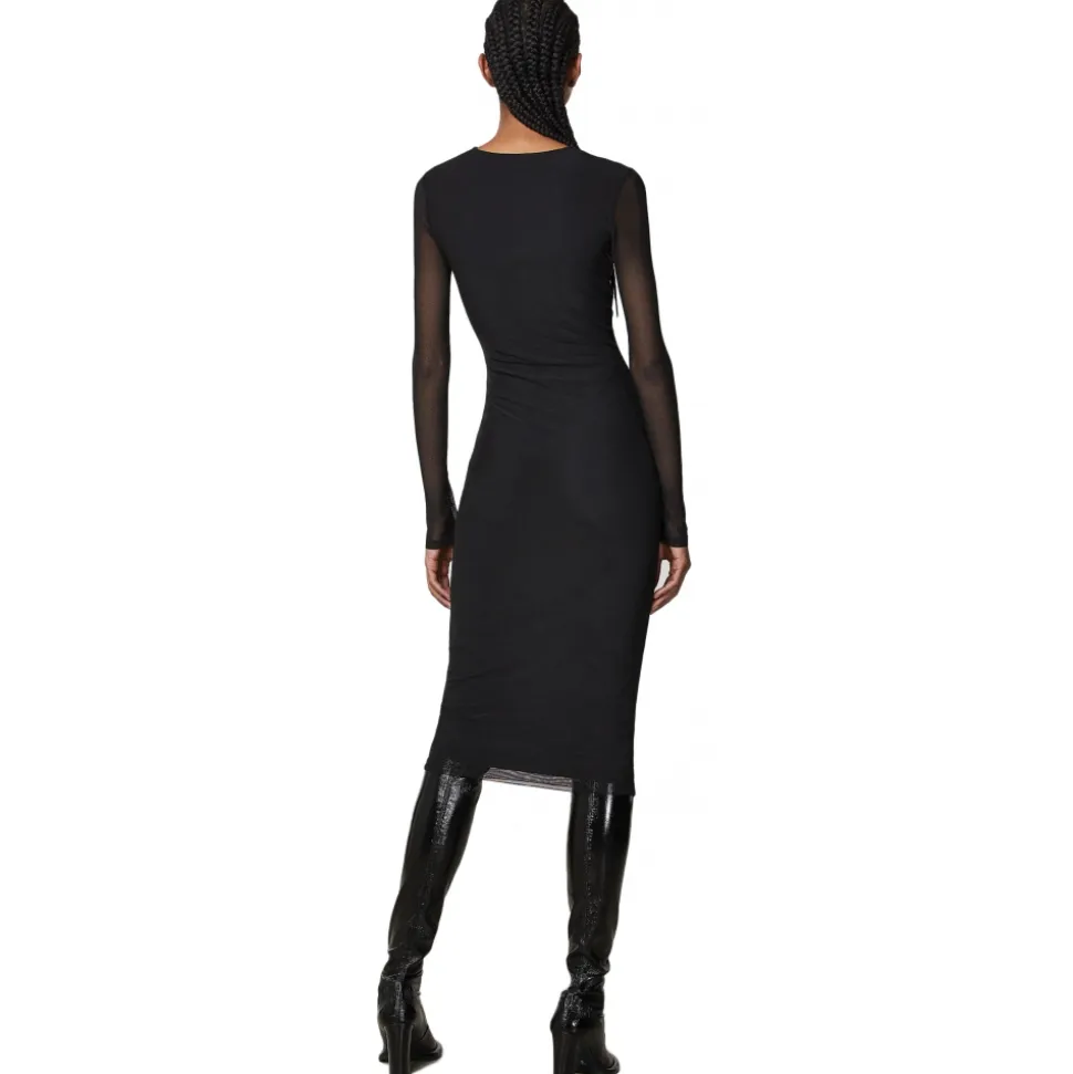 Patrizia Pepe sheath dress with round neck, long sleeve, midi length, in tulle with transparent sleeves.