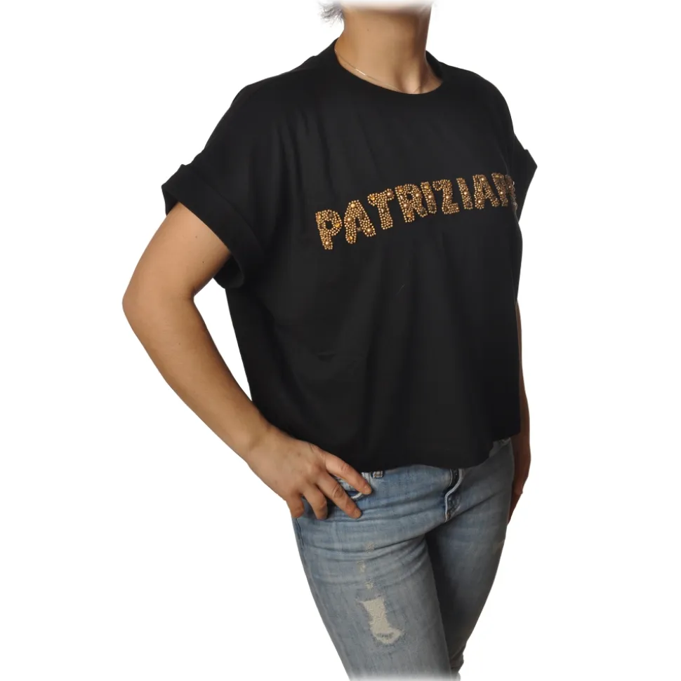 Patrizia Pepe – Sweatshirt Short Sleeve with Opening on the Back – Black – T-Shirt – Made in Italy – Luxury Exclusive Collection