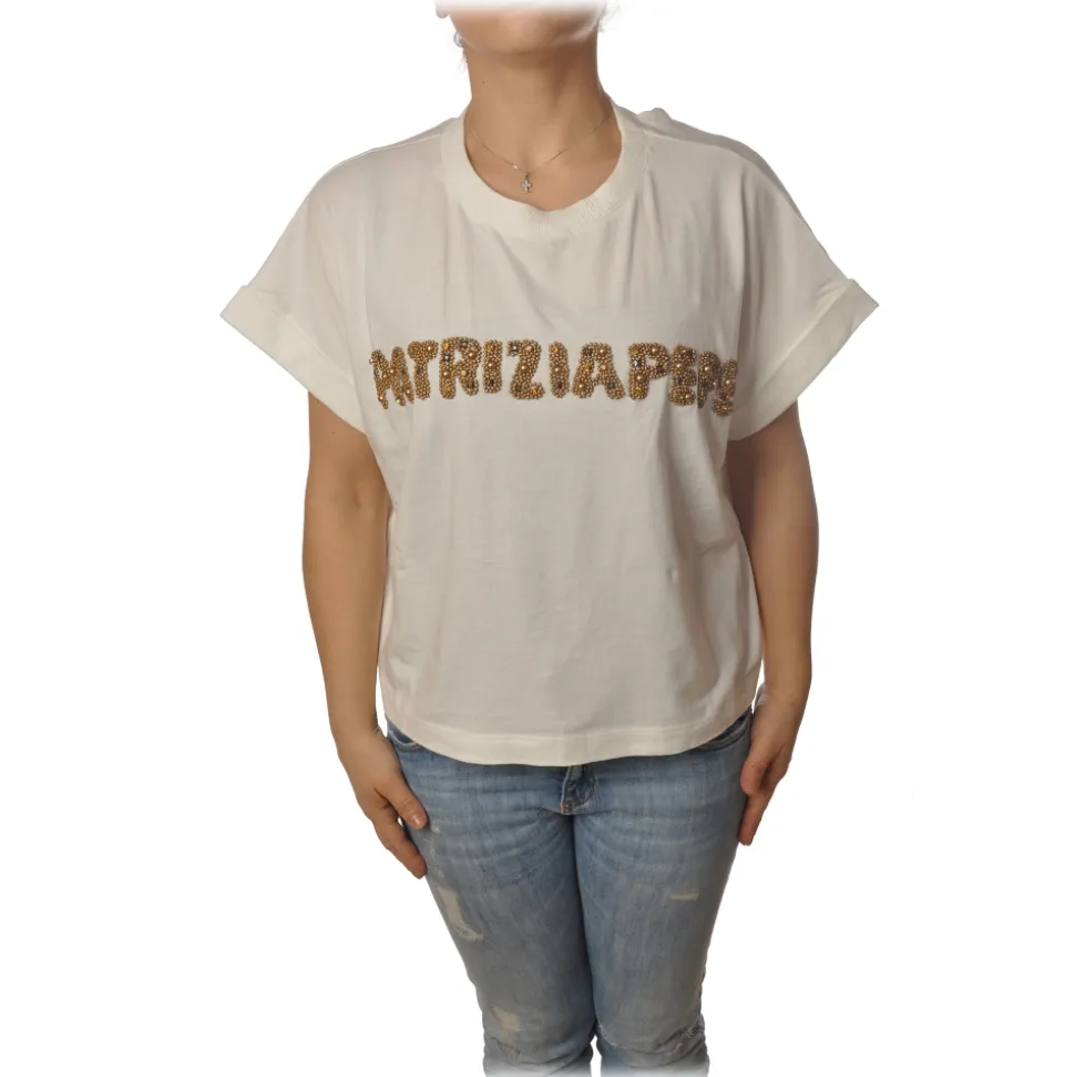 Patrizia Pepe – Sweatshirt Short Sleeve with Opening on the Back – White – T-Shirt – Made in Italy – Luxury Exclusive Collection