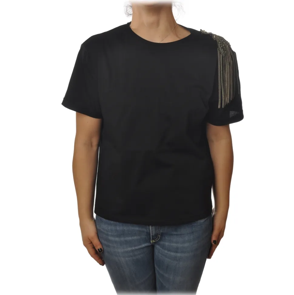 Patrizia Pepe – T-shirt Round-Neck Model with Brooch Detail – Black – T-Shirt – Made in Italy – Luxury Exclusive Collection