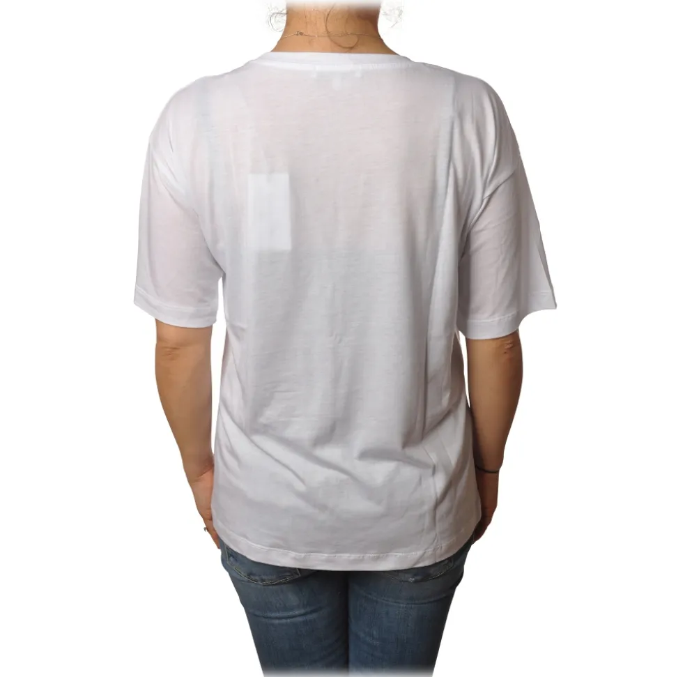 Patrizia Pepe – T-shirt Round-Neck Model with Print and Strass – White – T-Shirt – Made in Italy – Luxury Exclusive Collection