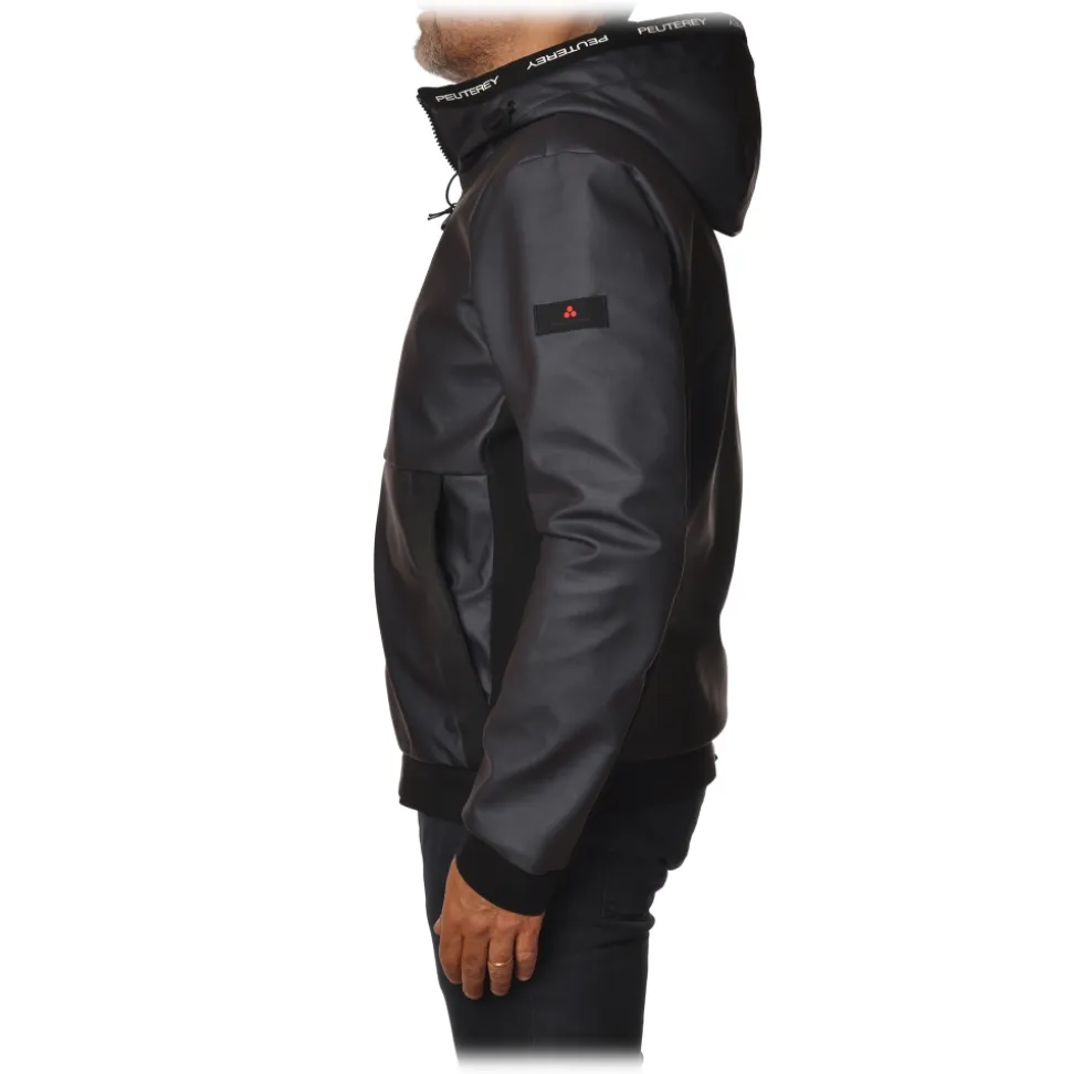 Peuterey jacket, Beck model, bomber model with hood profiled with contrasting logo, central zip closure, with cuffs and strap in technical fabric, two long oblique pockets, in rubberized fabric and technical padding inside.