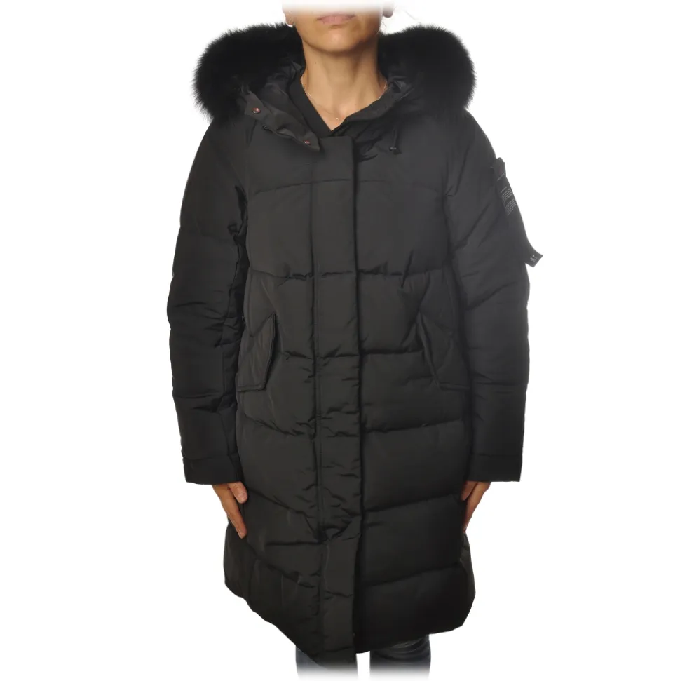 Peuterey jacket, Olong model, 3/4 over, stitched fabric, with two pockets with oblique flap, with hood finished with removable fur.