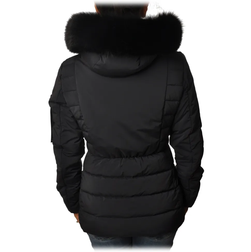 Peuterey jacket, short model with opaque and stitched fabric, with hood finished in removable fur, with zip closure, and two concealed pockets.