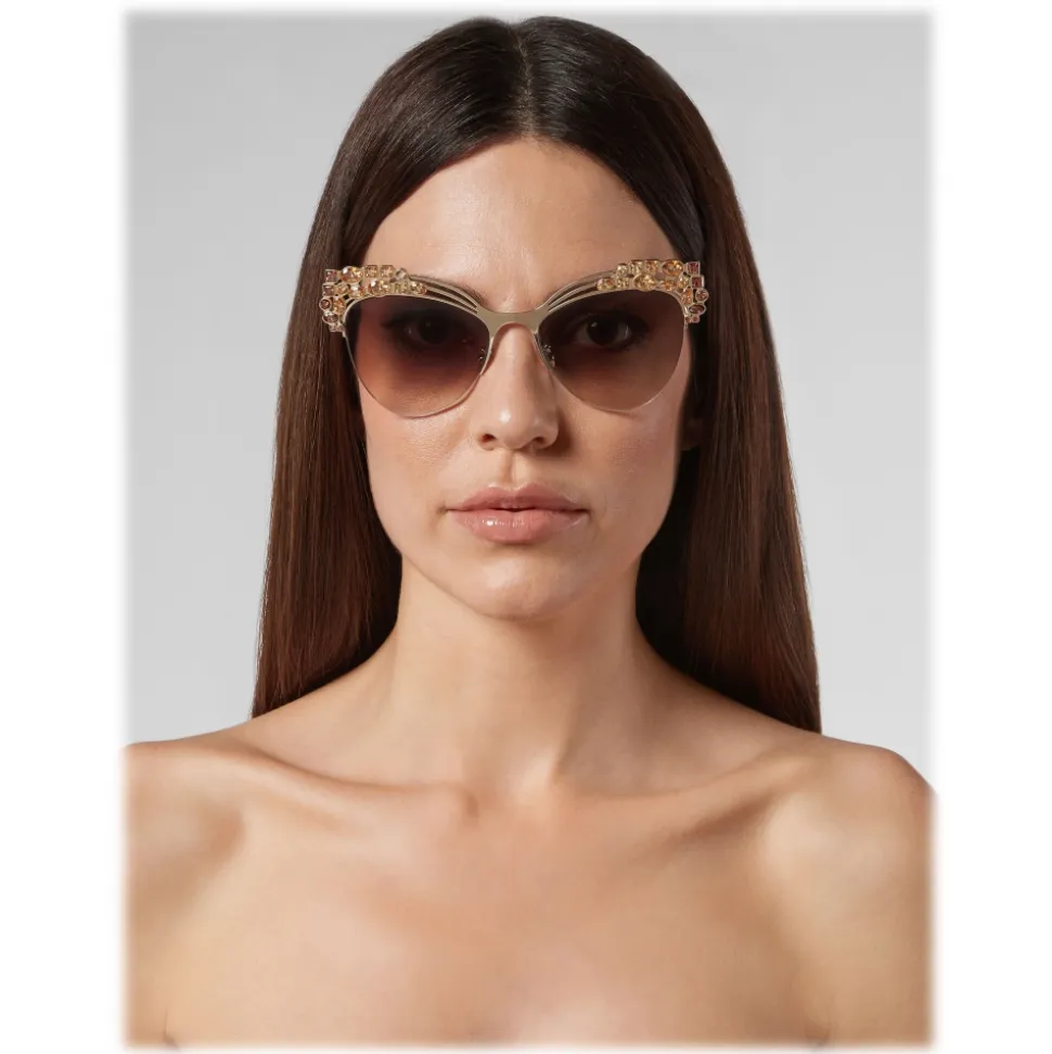 Philipp Plein Crystal Collection sunglasses. Metal frame with drop design edges enriched with zircon embellishments.