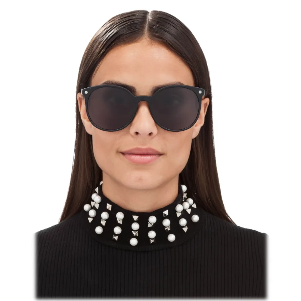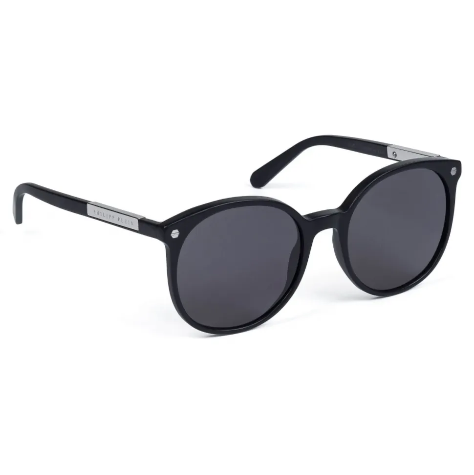Philipp Plein Enjoy Collection sunglasses. Matte Black acetate frame. Classic round timeless model for women.