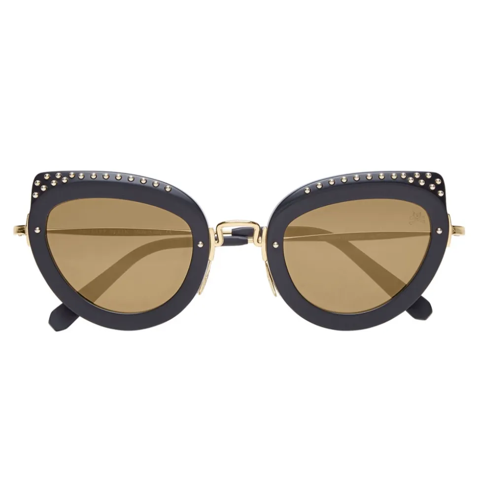 Philipp Plein Jaqueline Collection sunglasses. 1950s Peggy Guggenheim style lives on with these iconic glasses with round frames in acetate embellished with metal studs.