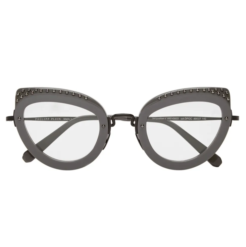 Philipp Plein Jaqueline Collection sunglasses. 1950s Peggy Guggenheim style lives on with these iconic glasses with round frames in acetate embellished with metal studs.