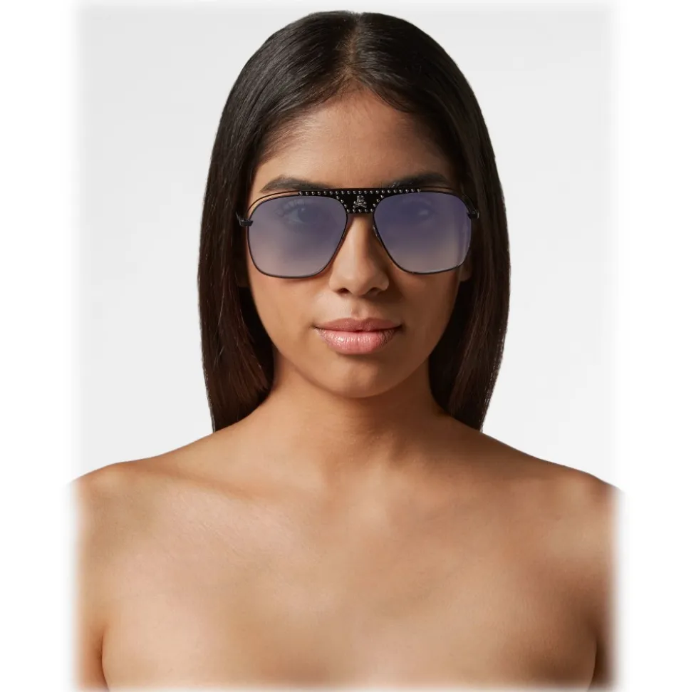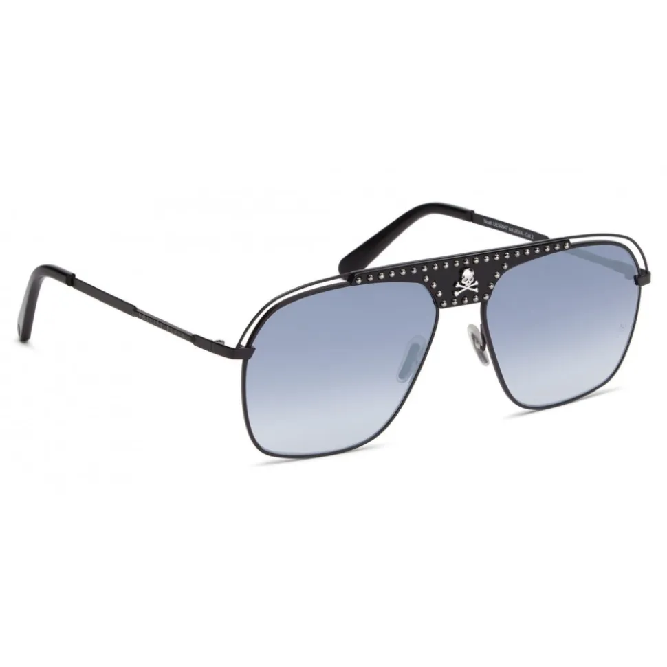 Large square glasses suitable for men and women, with skull and crossbones and studs.
