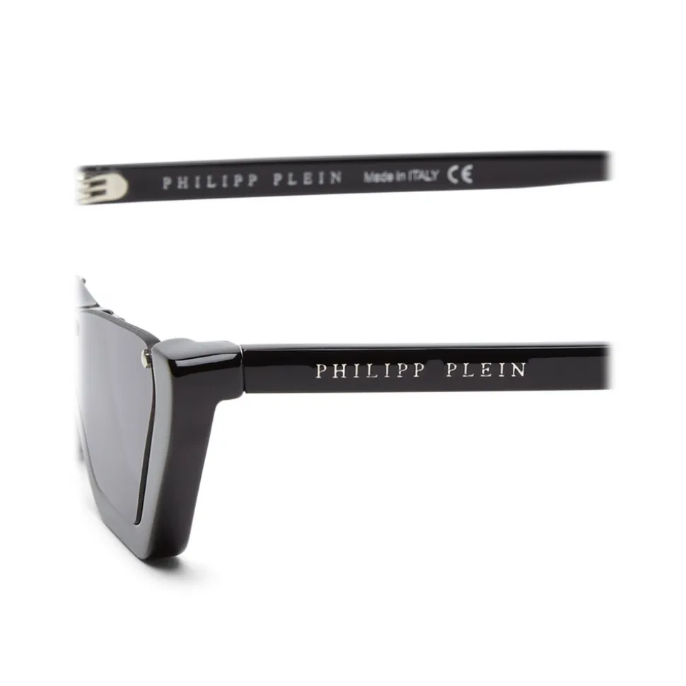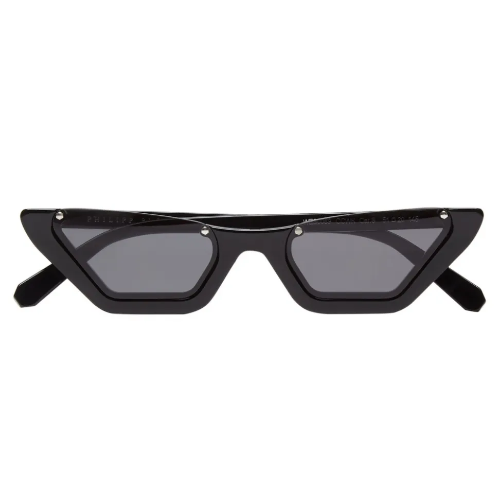 Philipp Plein Rachy Collection sunglasses. Geometrical “Cat Eye” model. Upper rimless acetate frame sunglasses.