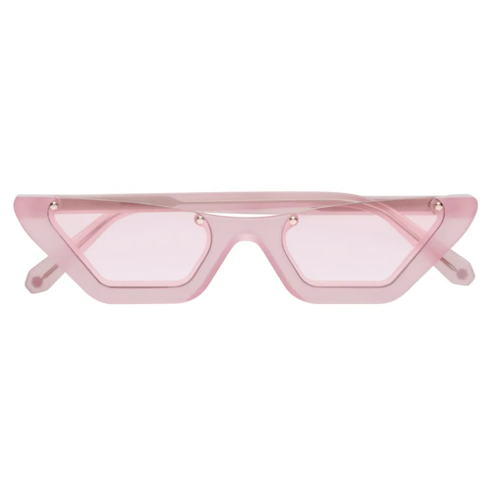 Geometrical “Cat Eye” model. Upper rimless acetate frame sunglasses