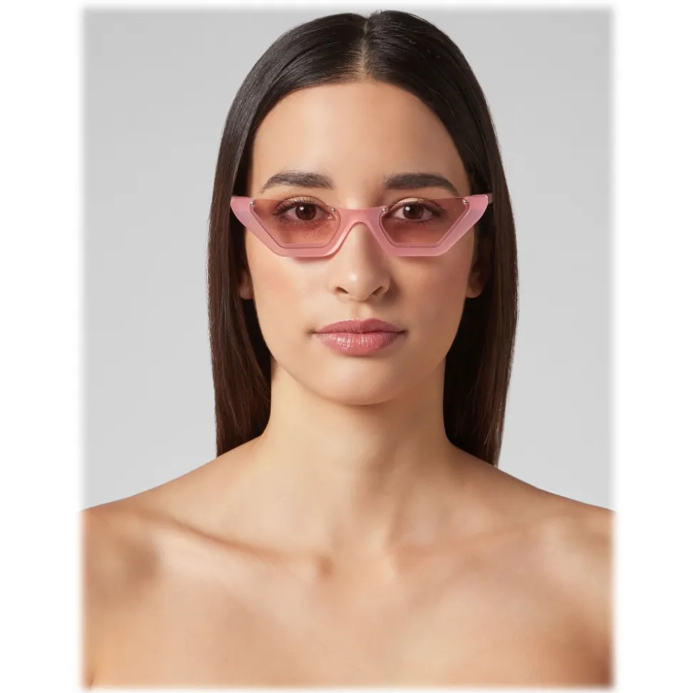 Philipp Plein Rachy Collection sunglasses. Geometrical “Cat Eye” model. Upper rimless acetate frame sunglasses.