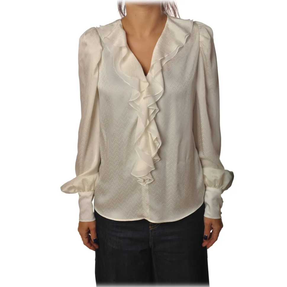 Pinko – Blouse Astrometria2 V-neck in Jacquard Effect – White – Shirt – Made in Italy – Luxury Exclusive Collection
