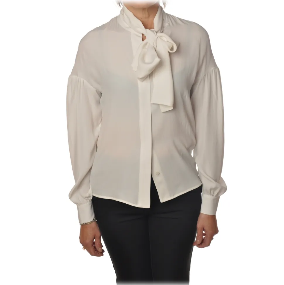 Pinko – Blouse Irish with Ribbon around the Neck – White – Shirt – Made in Italy – Luxury Exclusive Collection