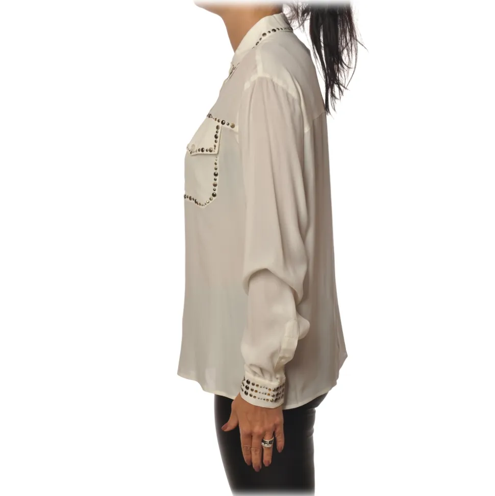 Pinko – Blouse Rilassato with Studs Details – White – Shirt – Made in Italy – Luxury Exclusive Collection