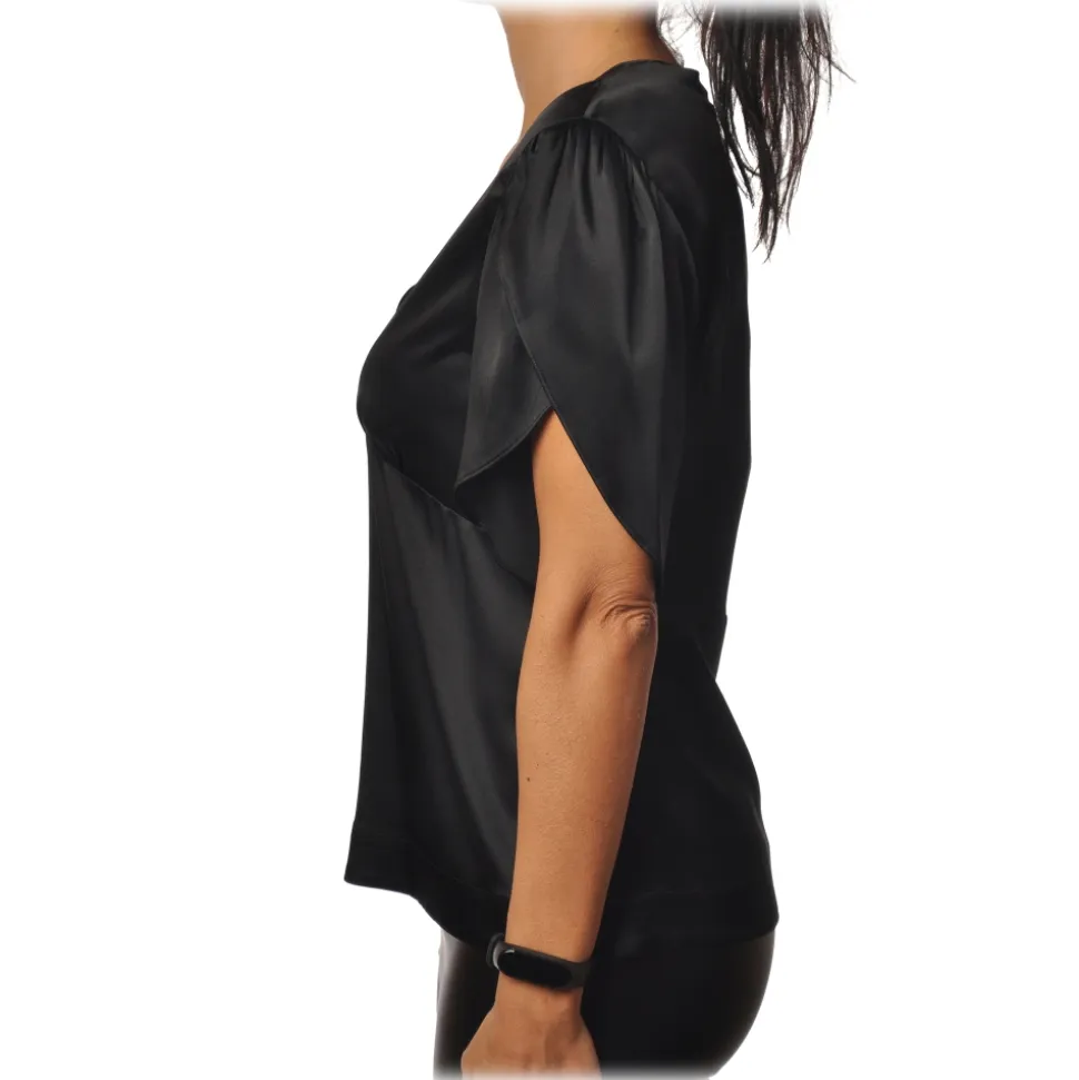 Tulip short-sleeved blouse, V-neck, entirely made of shiny silk, Pinko.