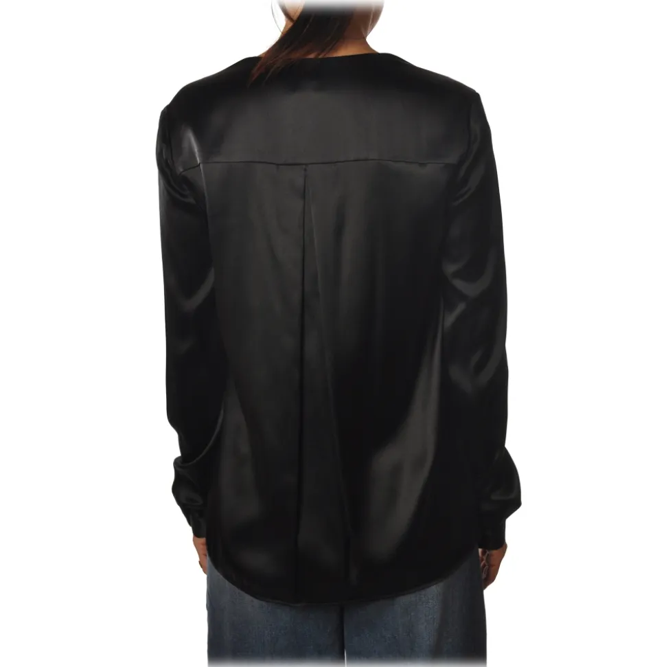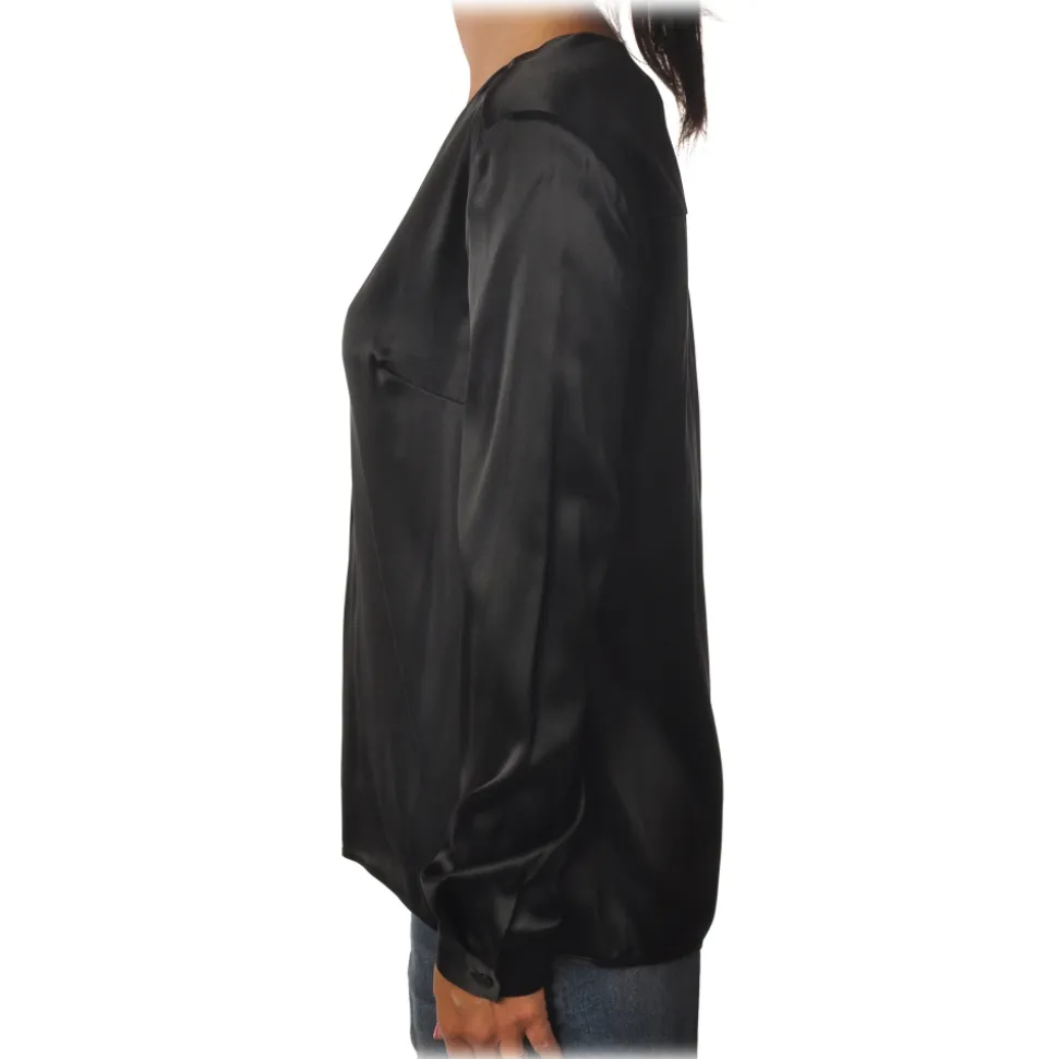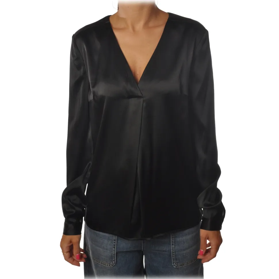 Pinko – Blouse Vendere in Silk with Long Sleeves and V-Neck – Black – Shirt – Made in Italy – Luxury Exclusive Collection