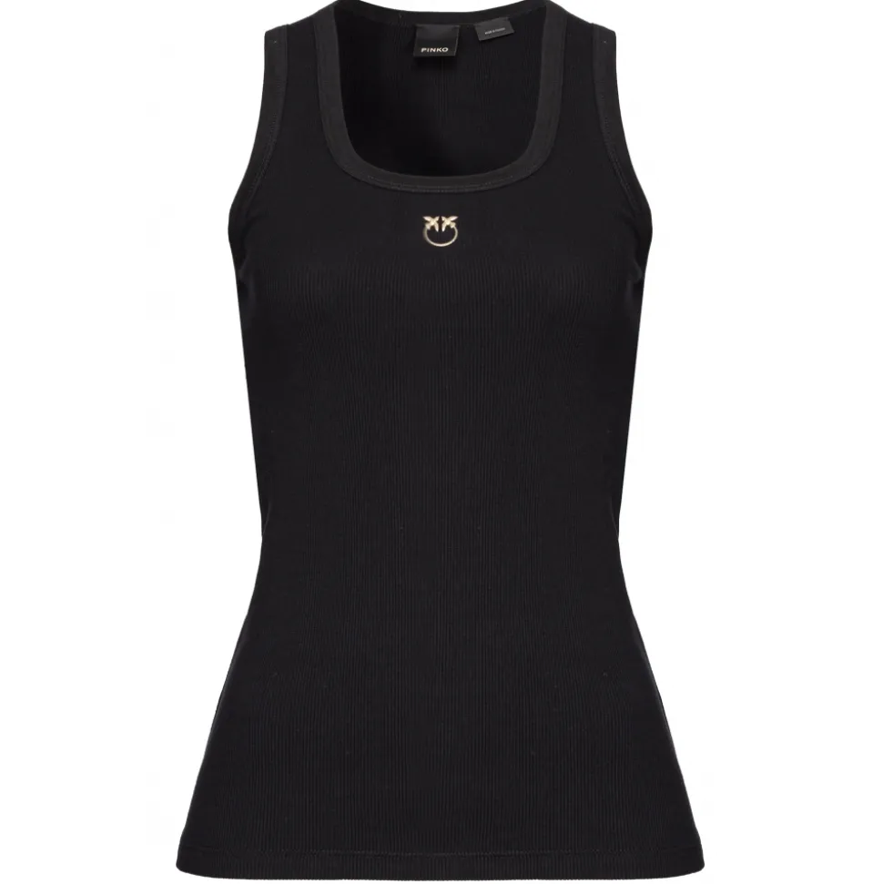Pinko tank top, rowing model, made entirely of cannetè cotton, with central double gold swallows printed logo.