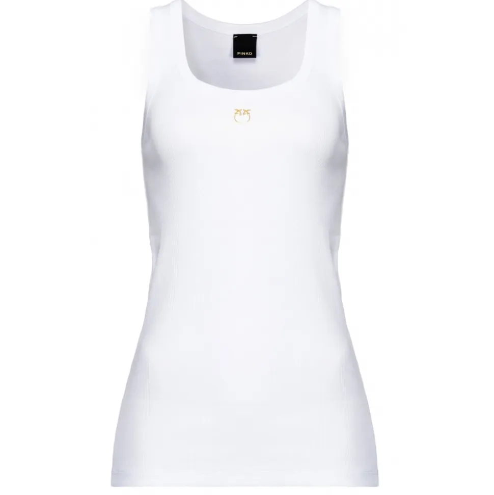 Pinko tank top, rowing model, made entirely of cannetè cotton, with central double gold swallows printed logo.
