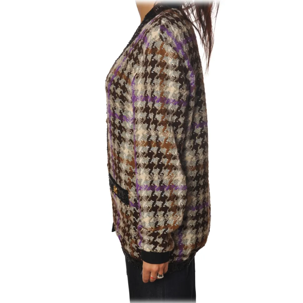 Pinko – Cardigan Rain with Long Sleeve and Gold Buttons – Brown/Purple – Sweater – Made in Italy – Luxury Exclusive Collection