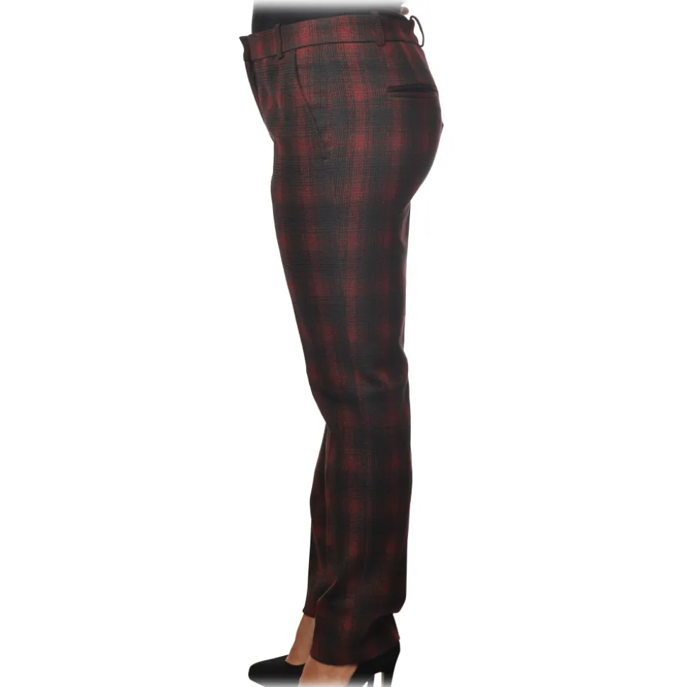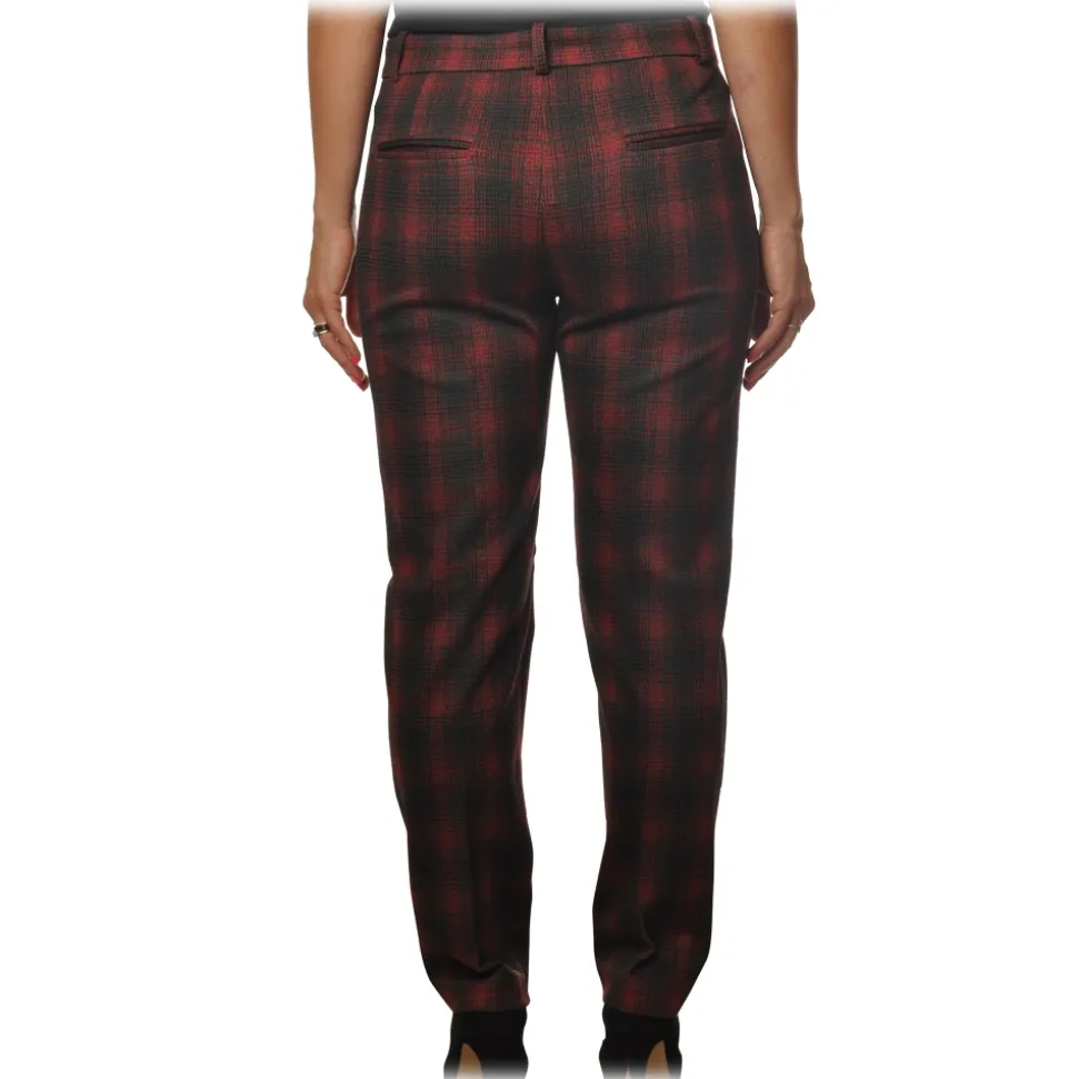 Pinko – Cigarette Trousers Bello106 in Check Pattern – Black/Red – Trousers – Made in Italy – Luxury Exclusive Collection