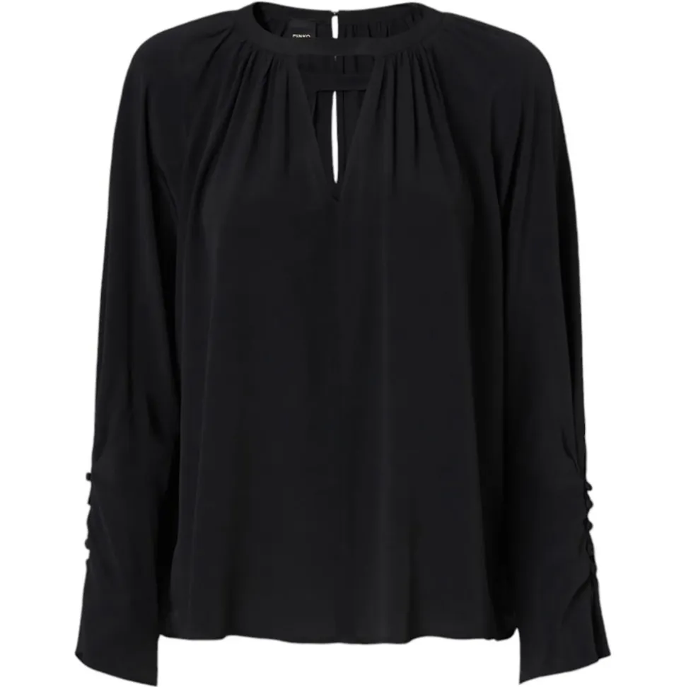 Pinko – Crepe Blouse with V Opening – Black – Shirts – Made in Italy – Luxury Exclusive Collection