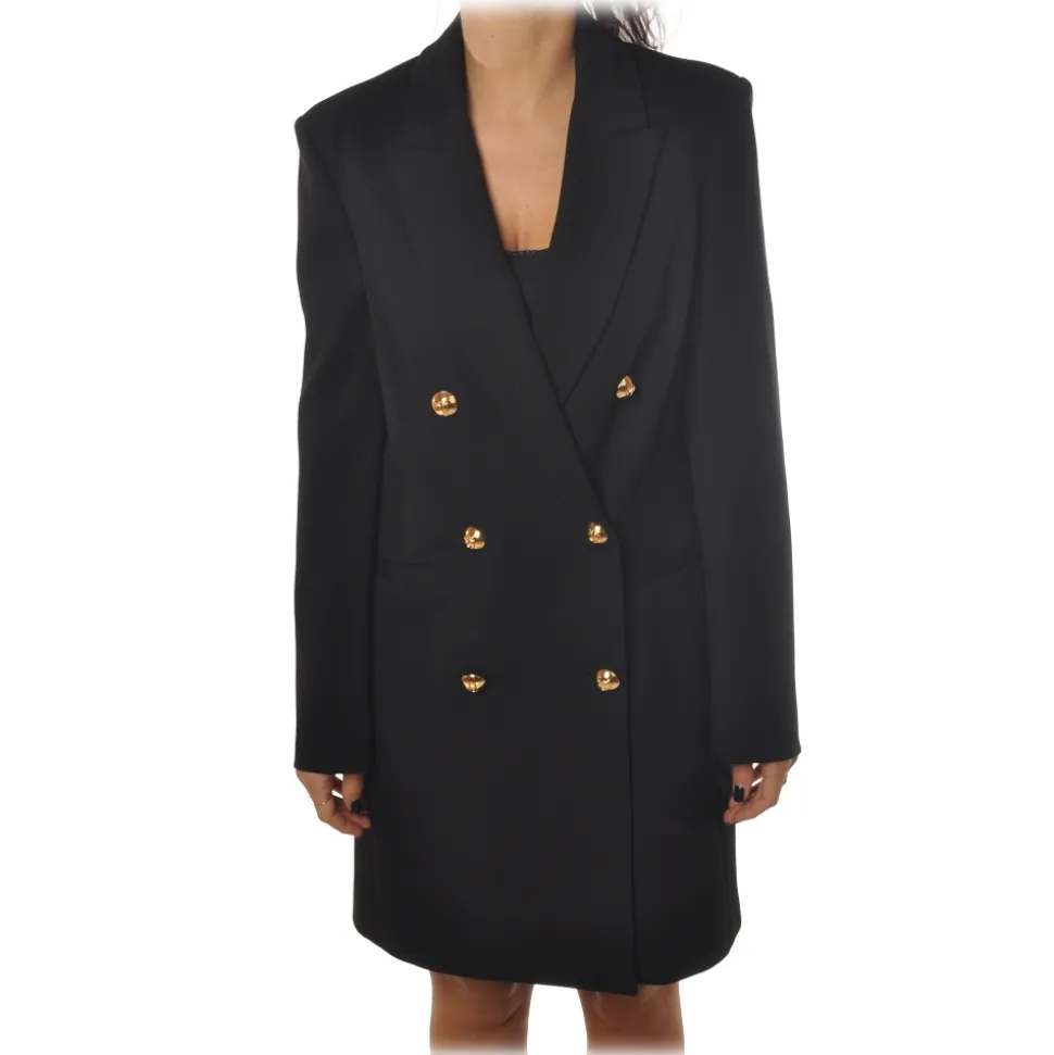 Pinko – Double-Breasted Robe Manteau Fernet2 – Black – Jacket – Made in Italy – Luxury Exclusive Collection
