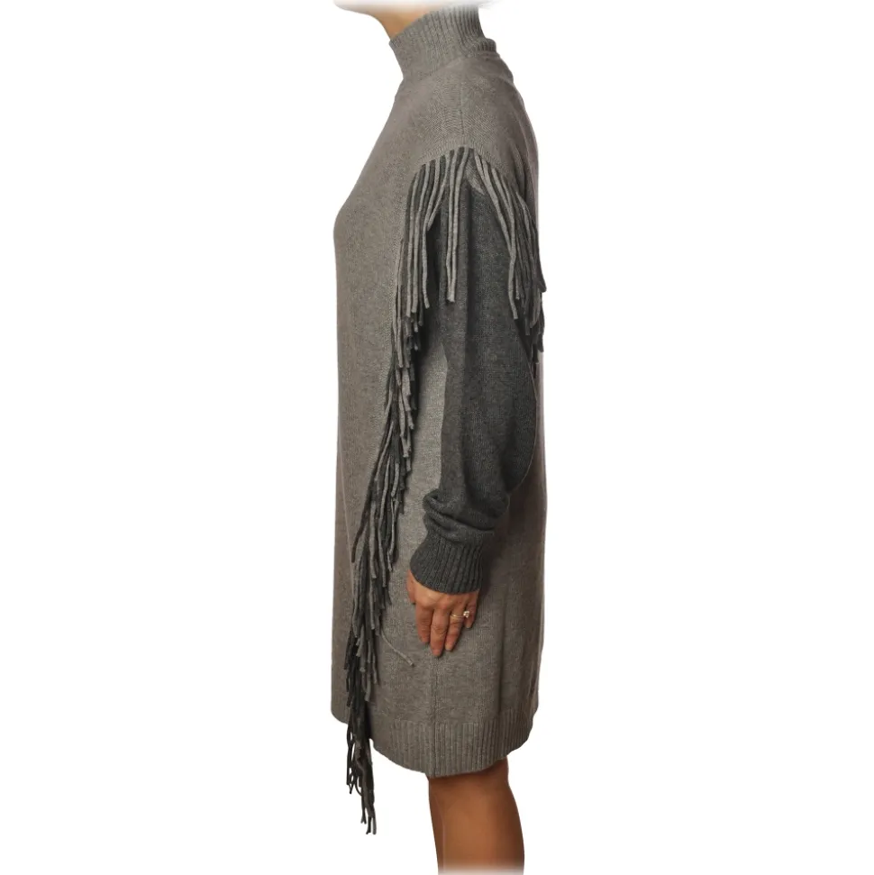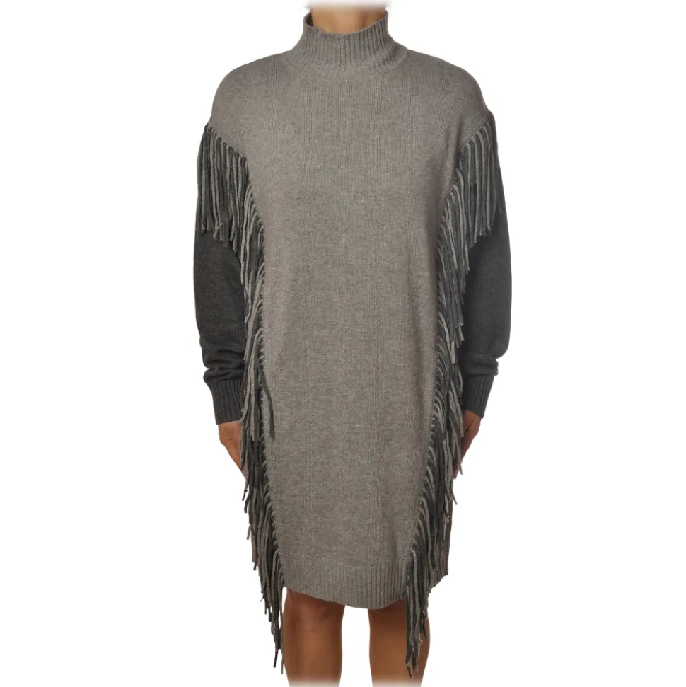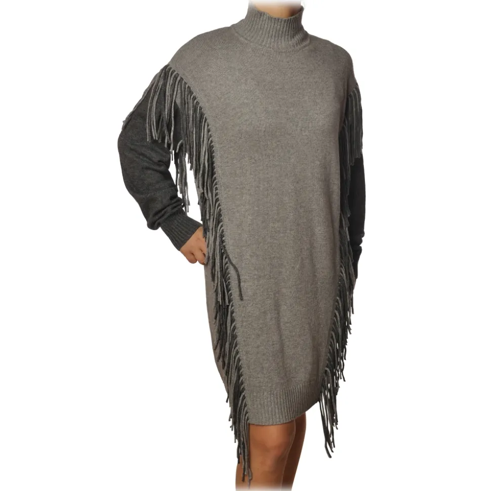 Pinko – Dress Miraggio with Mock Neck and Fringes – Pearl Grey – Dress – Made in Italy – Luxury Exclusive Collection