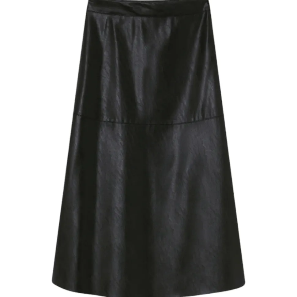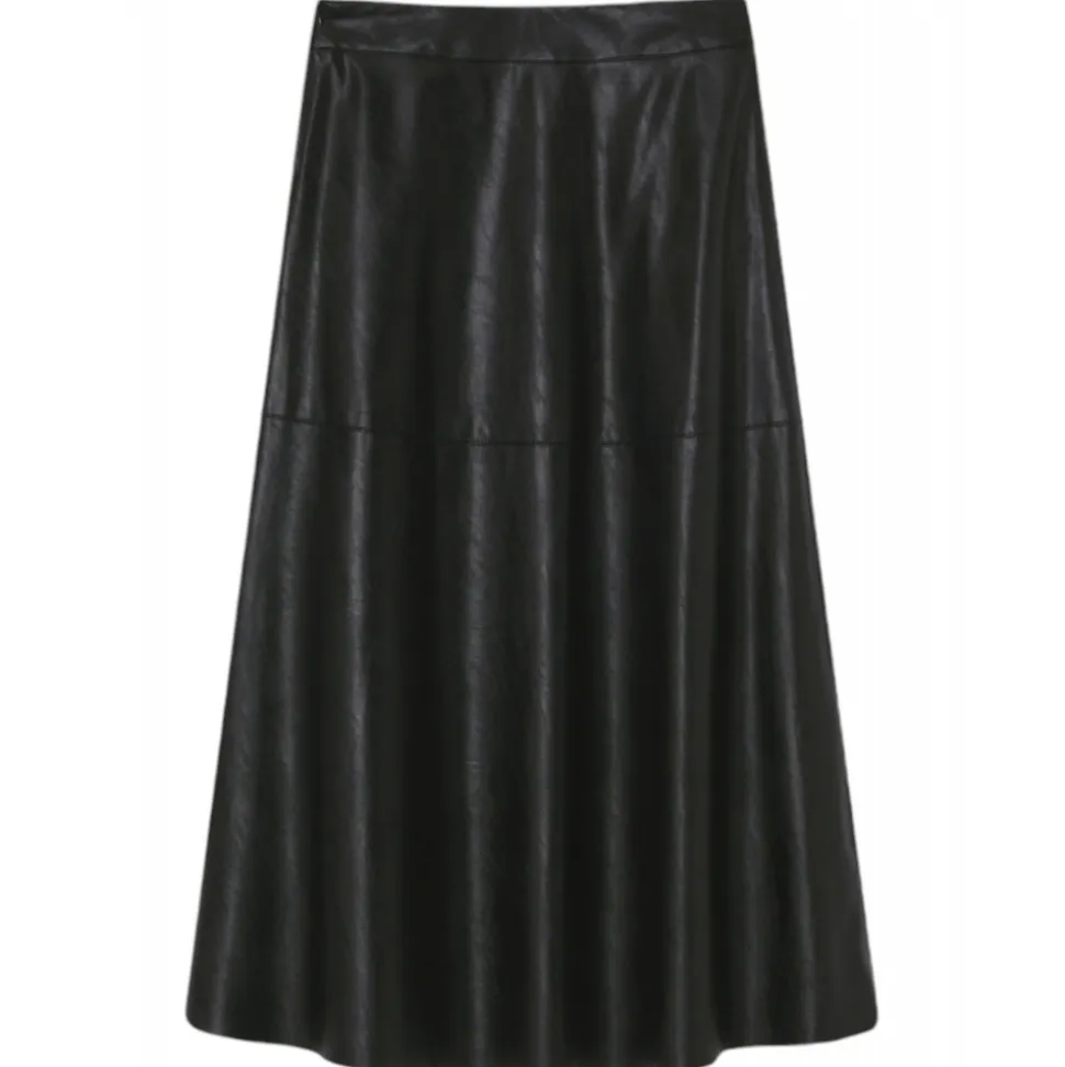 Pinko midi skirt with flared line, in leather-effect fabric. Invisible zip at the waist.
