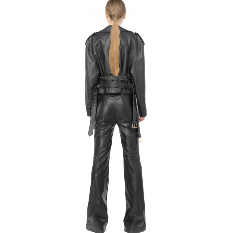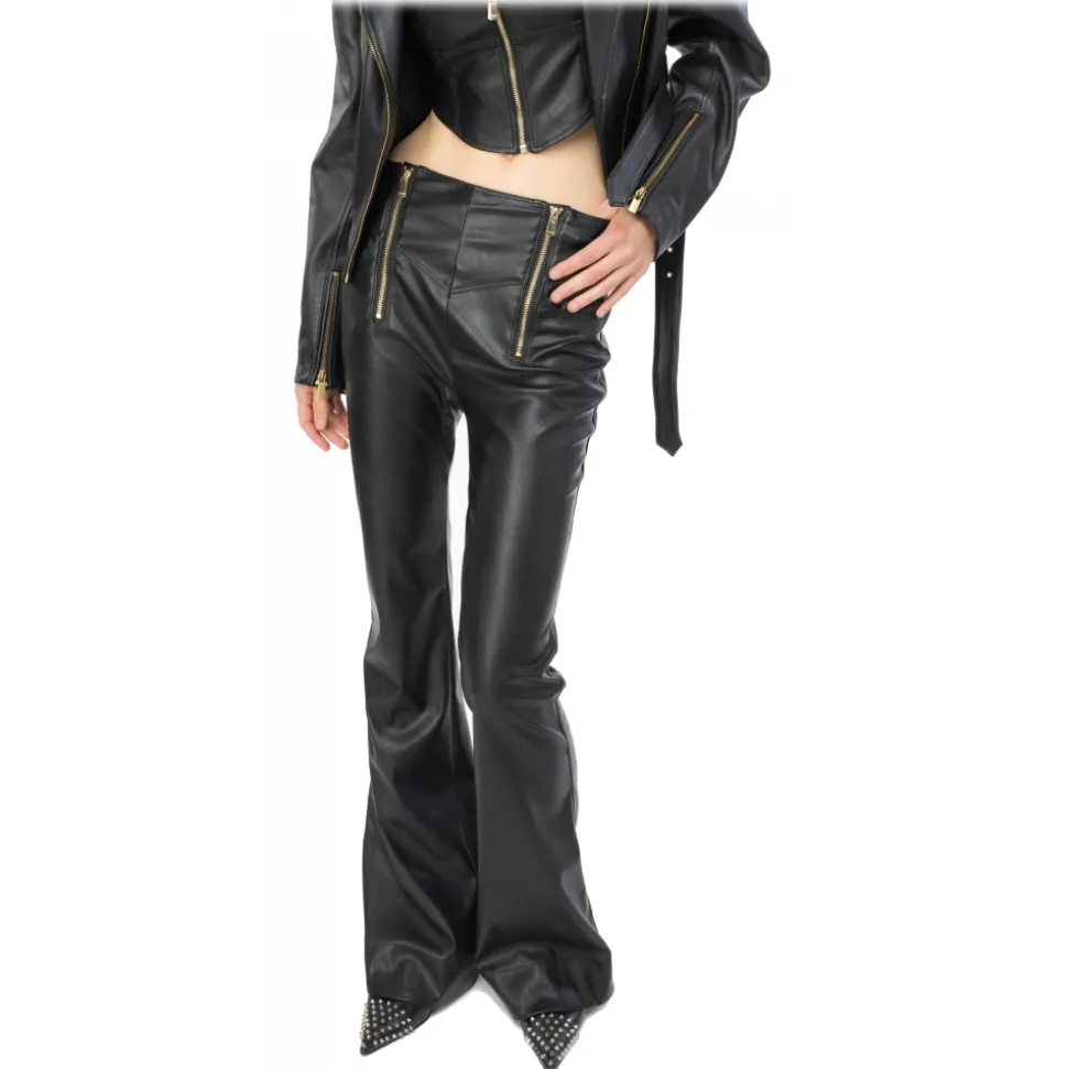 Pinko – Flare Trousers Leather Effect – Black – Trousers – Made in Italy – Luxury Exclusive Collection