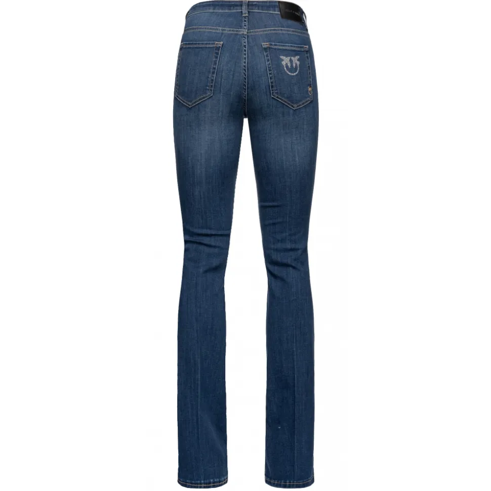 Pinko legging jeans, made entirely of stretch denim canvas, with studded swallow logo back pocket.