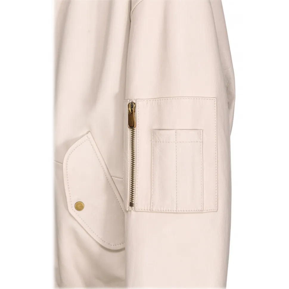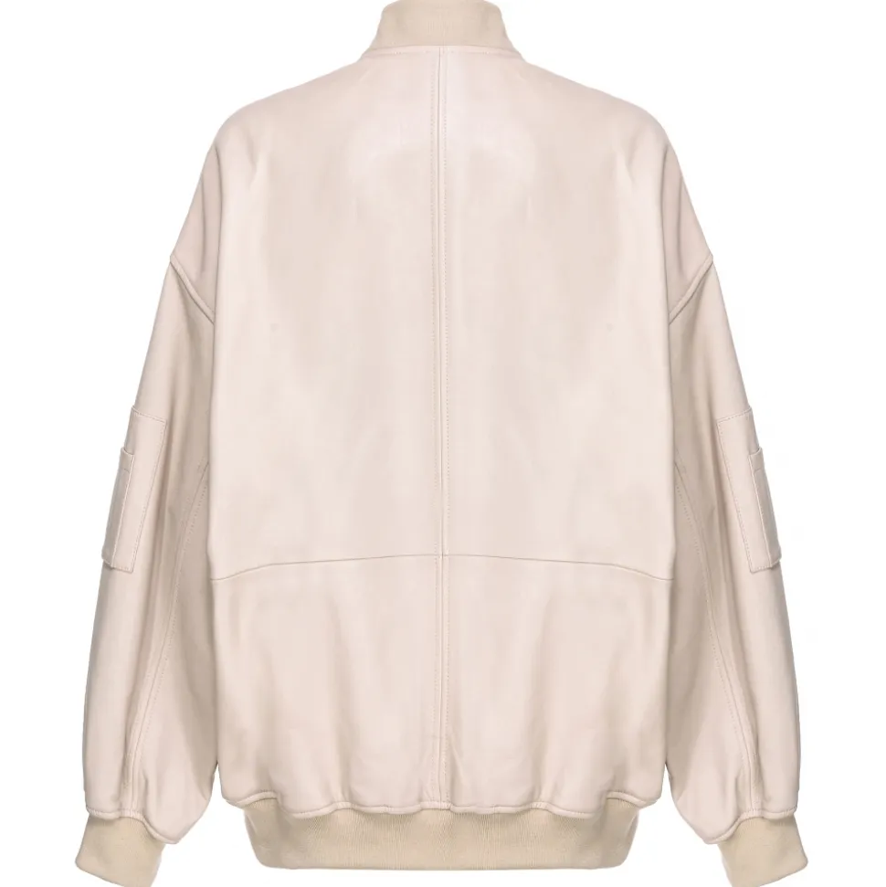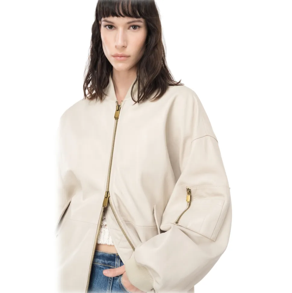 Pinko – Genuine Leather Bomber Jacket with Zip Closure – Beige – Jackets – Made in Italy – Luxury Exclusive Collection