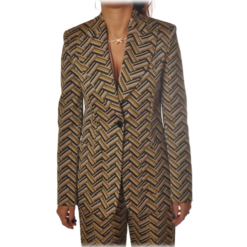 Pinko – Jacket Cassegrain in Geometric Pattern – Yellow/Pink – Jacket – Made in Italy – Luxury Exclusive Collection