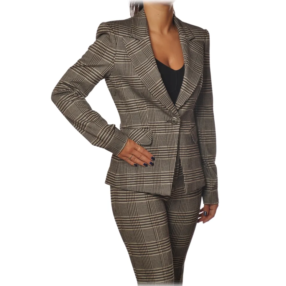 Screwed jacket with central swallow button, peak lapels with flap pockets on the front, entirely made in Prince of Galles motif, Pinko.