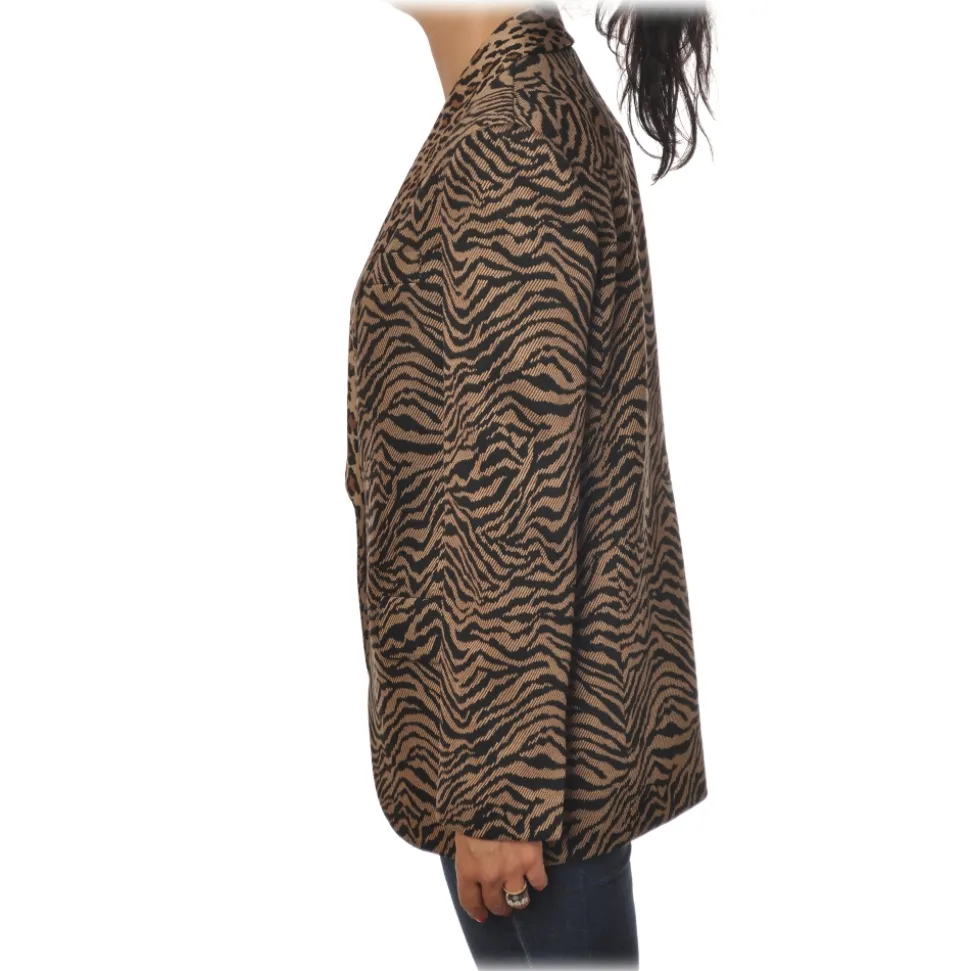 Pinko – Jacket Pragmatica1 in Animalier Pattern – Black/Brown – Jacket – Made in Italy – Luxury Exclusive Collection